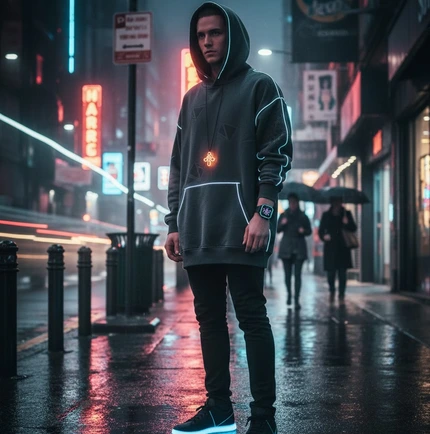 Les innovations ne se limitent pas aux effets visuels. Une veste techwear peut intégrer des textiles déperlants avec capuche ajustable automatiquement, tandis que des sneakers intelligentes suivent votre activité sans jamais gêner vos mouvements. Des accessoires comme une écharpe auto-chauffante ou un soutien-gorge connecté permettent d’adapter la chaleur corporelle et le suivi physiologique en temps réel, offrant ainsi confort et sécurité dans un style futuriste 🌟.