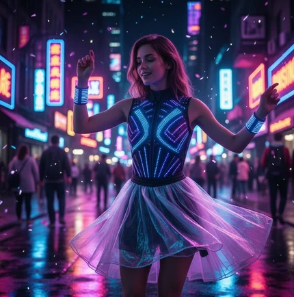 Sur scène comme dans la vie quotidienne, la mode électronique s’adapte aux contextes : des accessoires LED discrets peuvent illuminer un trajet nocturne ou ponctuer une soirée en club, tandis que des effets lumineux plus marqués sont réservés aux performances et shows. L’objectif est d’allier créativité, style et interaction, tout en restant confortable et facile à porter.