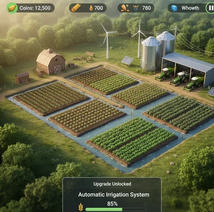 Un bon jeu de ferme repose sur une progression lisible et gratifiante. Le joueur doit sentir l’évolution de son exploitation, depuis les premières récoltes modestes jusqu’à une organisation plus complexe. La gestion du temps, de l’argent et des ressources crée une boucle motivante, proche d’un système de niveaux bien pensé où chaque amélioration débloque de nouvelles possibilités.